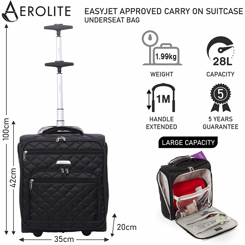Aerolite Easyjet Carry On Fits 45x36x20cm New & Improved 2025 Cabin Under Seat Trolley Bag Suitcase Black