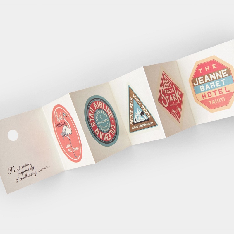 This limited edition set celebrates the daring exploits and pioneering spirits of five remarkable women adventurers from history. Each sticker is a nod to their incredible journeys and achievements, crafted with vintage prop design expertise.