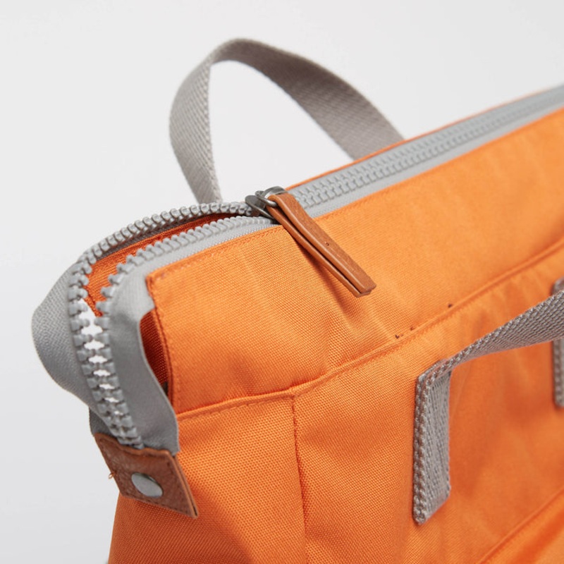 Made using the rPET sustainable Canvas, the bag has a matte feel. It is then coated to make it water-resistant and finally put through a softening process to make it have a softer feel. And our nylon material is weather-resistant, lightweight, and as durable as all our ROKA bags!
