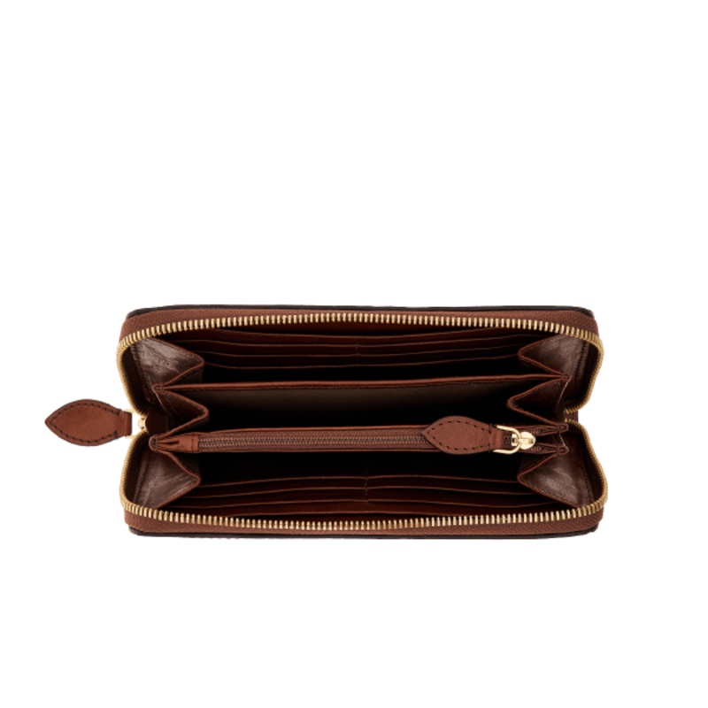 BETTINA ZIP AROUND LEATHER BAG BROWN/GOLD