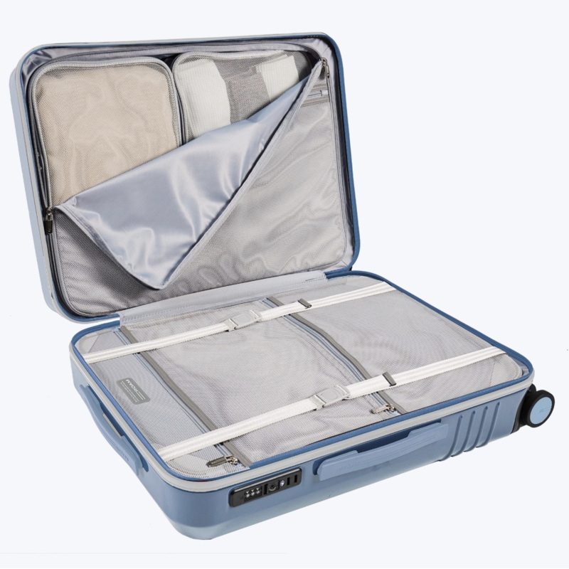 The Carry-On is designed to make traveling easy and pleasurable. Enjoy wheeling it around busy airports with 360 spinning ball-bearing wheels that help you weave it through, even on crowded days. The TSA-approved lock keeps your contents safely packed away inside, while allowing you to get through security without fumbling for padlock keys. Theres also a telescoping handle that adjusts to your height, locking itself firmly into place so you dont put any unnecessary strain on your back. Contents stay nice and dry thanks to the water repellentzipper,and the Carry-On is made from eco-friendlyrecycled fabric,respecting the planet we live in.