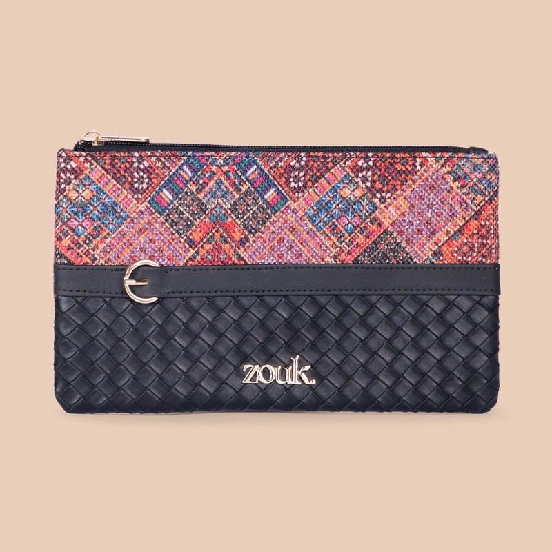 A compact, grab-and-go cosmetic pouch designed to carry your daily essentials with ease. Proudly made in India and 100% PeTA-approved, this sleek pouch is crafted from durable fabric with a woven textured PU panel on the front for a refined tactile finish. A minimal silhouette elevated by an ornamental buckle, its your versatile organiser for quick touch-ups or travel light days.
