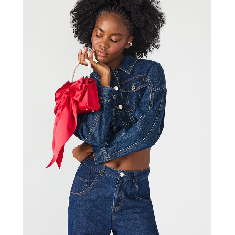 Introducing the sophisticated COSETTE bag. Expertly crafted with smooth satin and a beaded top handle, this elegant bag features a long satin bow and a structured top handle for a touch of glamour. The interior back slit pocket and detachable chain strap add practicality to its angled, trapezoid silhouette. Perfect for any formal occasion, this bag is a must-have for the style-conscious individual.