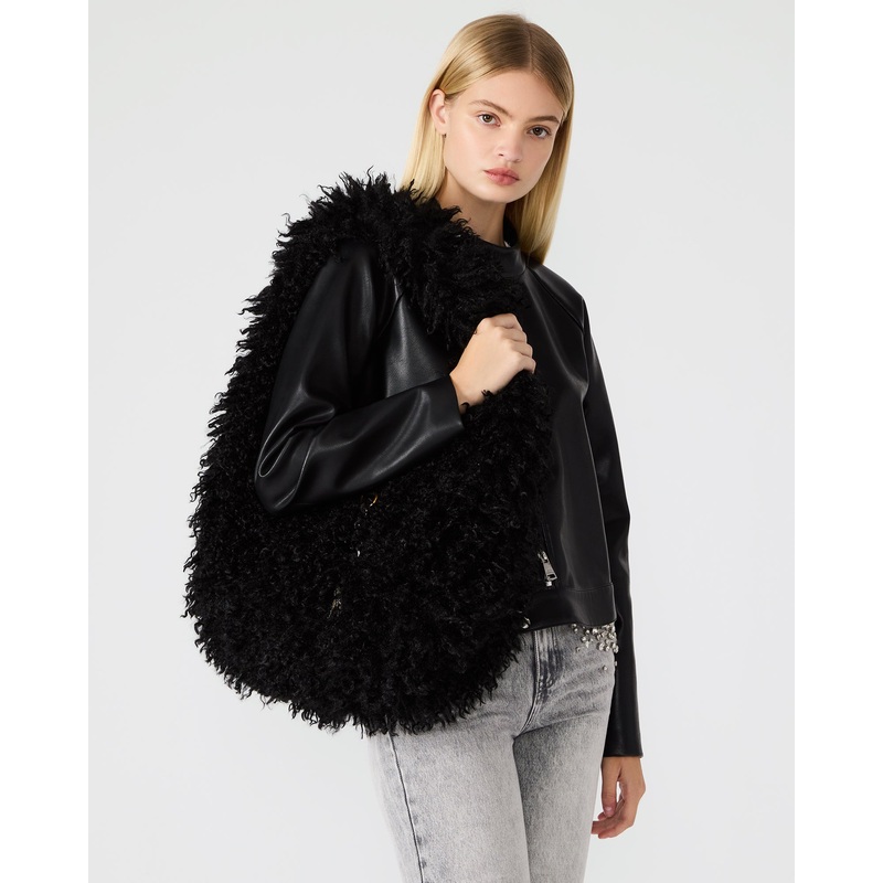 This ICONIC BAG BLACK tote combines style with practicality. Featuring a soft faux fur hobo shoulder strap for comfortable carrying, it includes a removable bag charm that adds a customizable touch. The interior zipper pocket keeps essentials secure, while the magnetic snap closure offers easy access with reliable closure. Perfect for everyday use, this handbag balances fashion and functionality seamlessly.