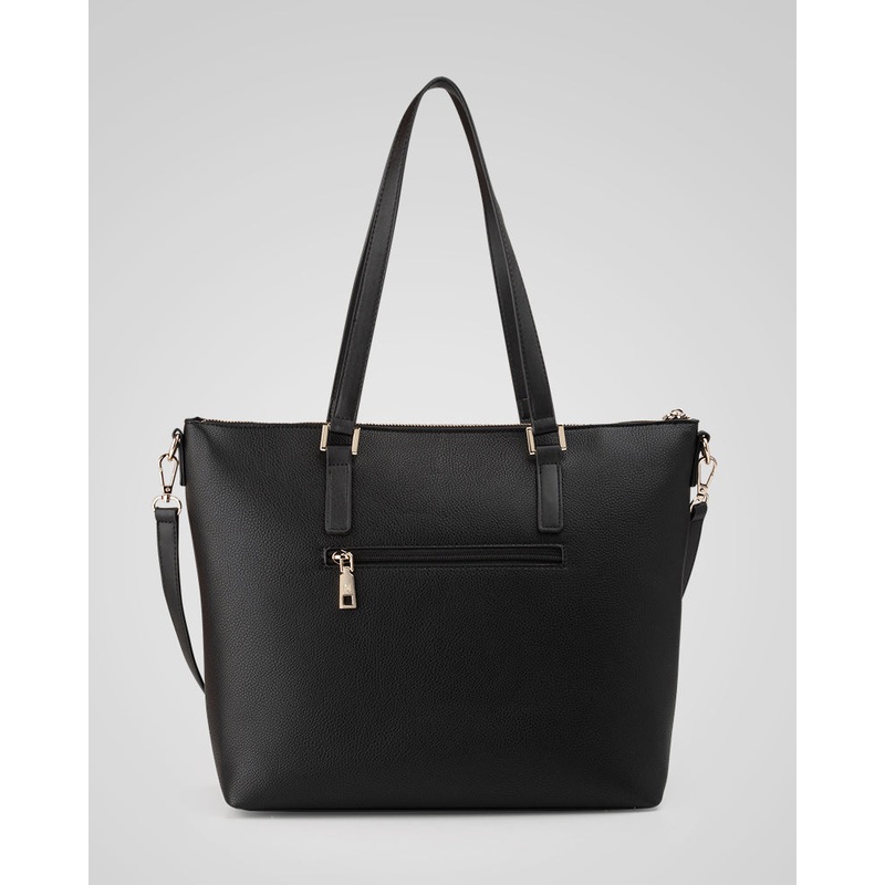 Inga Large Zip Top Tote Bag With Laptop Pocket + Metallic Stripe Bag Strap Black + White, Black & Gold
