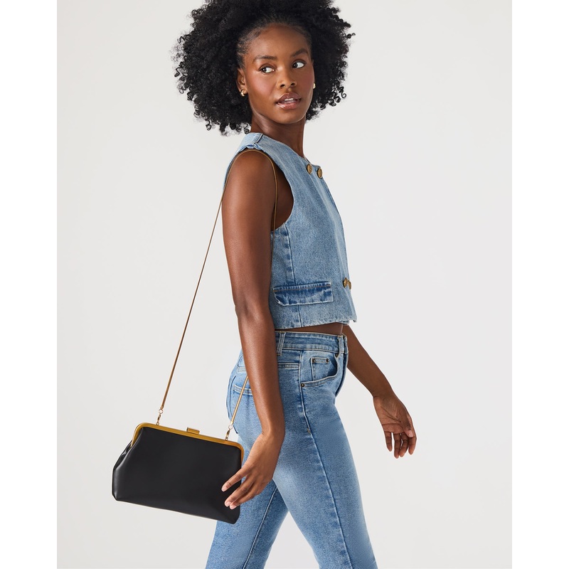 Expertly designed for a night out, the KISSES bag is a must-have accessory. With its kiss-lock small clutch and detachable chain crossbody strap, this bag offers versatility and style. The backwall zipper pocket adds functionality to this perfect evening clutch bag.