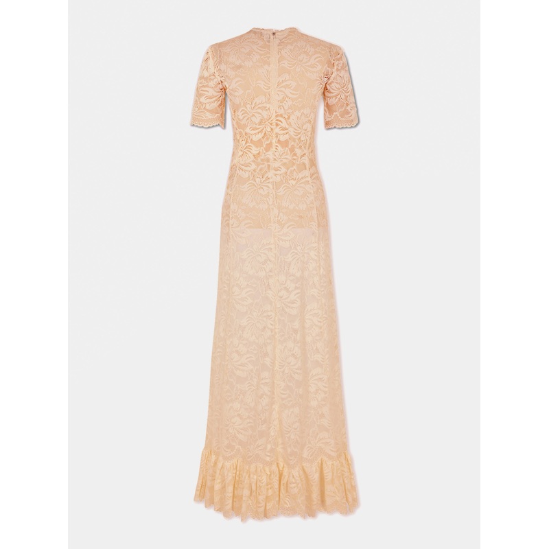 Long raffia colored lace dress