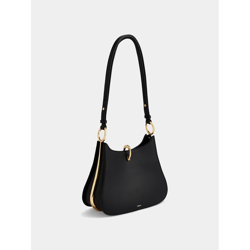 - The bag is adorned with a gold metallic frame.Gold ring details.