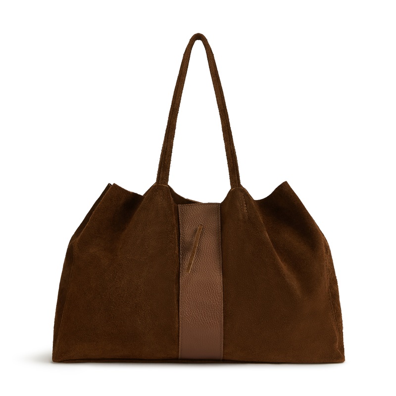 Crafted from suede in a luxurious rich brown hue, this slouchy shopper tote combines sophisticated elegance with practical functionality. The relaxed silhouette offers ample storage while the supple leather develops a distinctive patina over time, ensuring each bag becomes uniquely yours. Perfect for everyday use or weekend excursions.