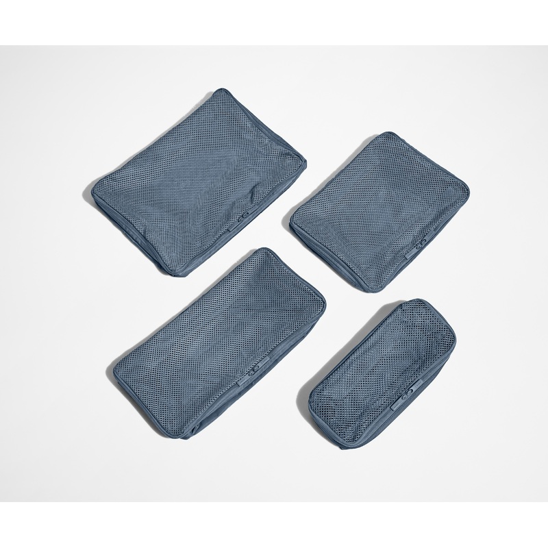 Our packing cubes compress and organize everything inside your suitcase, from socks to shirts to even your bulkiest items. Made from water repellent nylon that protects your clothes, these travel must-haves are designed with a mesh panel to make it easy to find what you need without fully unpacking. Thoughtfully packaged as a set of four, our packing cubes are designed to fit perfectly inside our luggage.