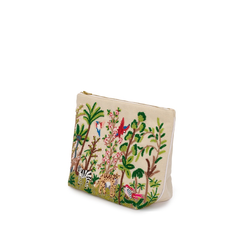 Introducing the Serengeti Cosmetic Bag, perfect for the animal lover in you. Made from durable canvas and adorned with intricate hand-beaded animals, this cosmetic bag is both functional and stylish. Carry your essentials in a unique and eye-catching way.