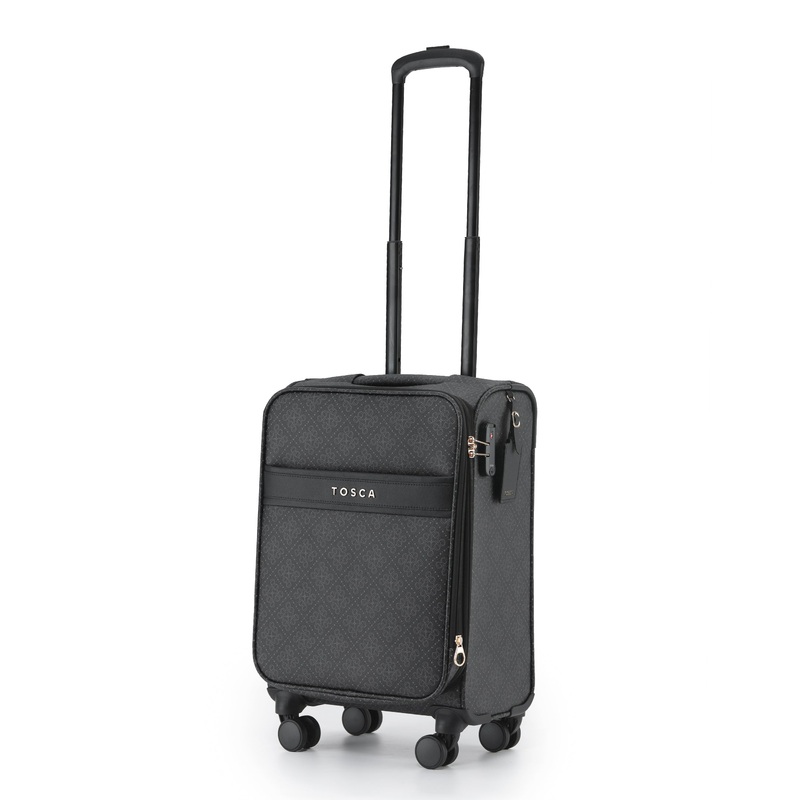 The Tosca Willow 55cm Fashion Carry on Suitcase Spinner in Caviar makes traveling effortless with its lightweight design and stylish appeal.